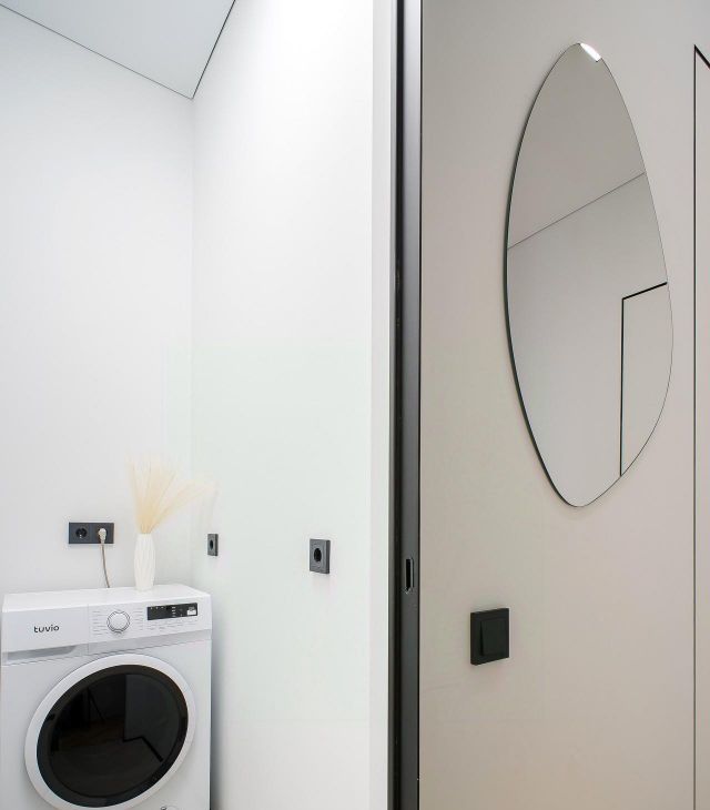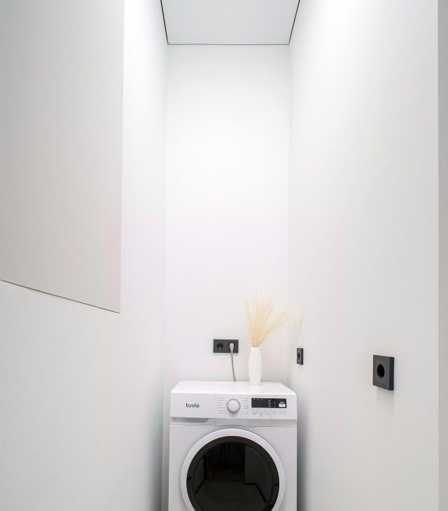 -прачечная, где можно удобно стирать вещи без размещения сушки вещей на жилой территории (фото 6, 32)