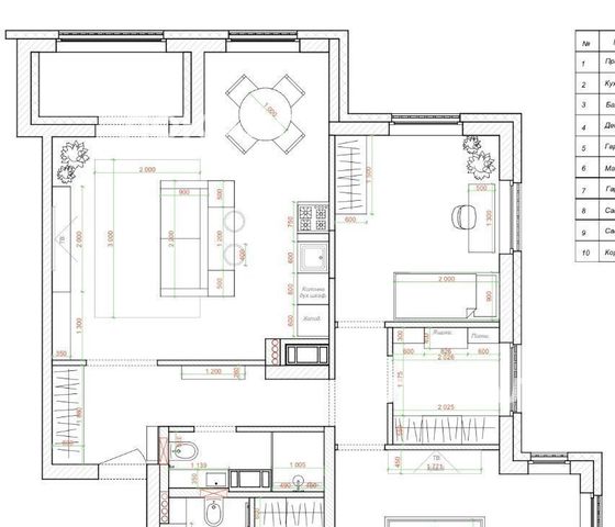 Кухня-гостиная со столовой зоной. Современная кухонная мебель, со встроенным холодильником, посудомоечной машиной, индукционной варочной панелью, и духовым шкафом. (техника проверенных марок Воsсh, Gоrеnjе, АЕG.) Остров с барными стульями. Столешница компакт-плита (hpl столешница). В столовой зоне стол из шпона дуба на 4 персоны с мягкими стульями из массива бука. В зоне гостиной диван-кровать, ТВ 55 дюймов, оформленная ТВ зона с хранением.