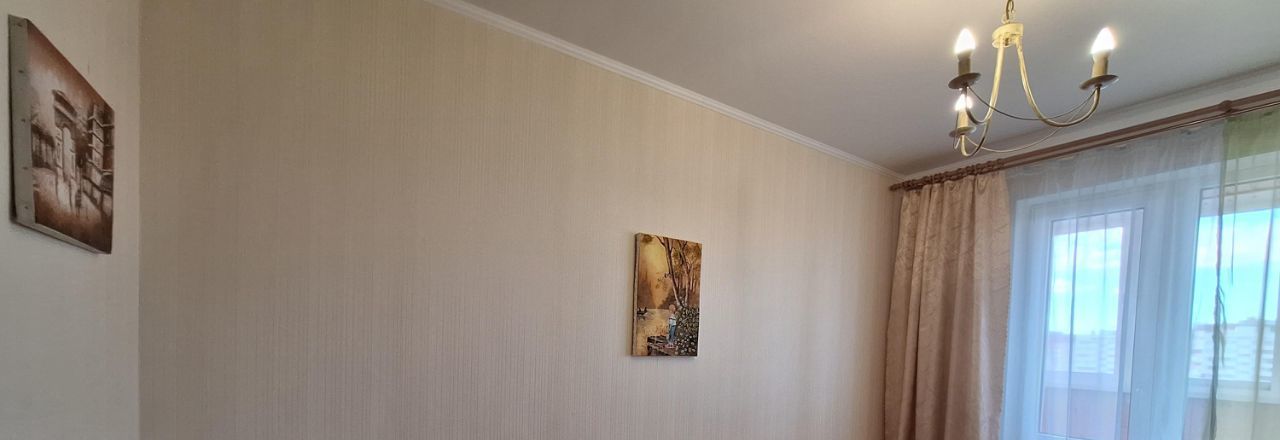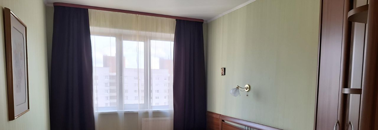 Гостиная 21 кв.м., спальня 14 кв.м., кабинет/детская - 12 кв.м. Раздельный санузел. Застекленный балкон с освещением и розеткой. Окна на две стороны: на Богатырский проспект и во двор.