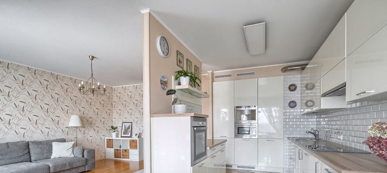 Евро-планировка: 2 спальни (в одной гардеробная), кухня-гостиная 38,5 м², 2 санузла, лоджия.