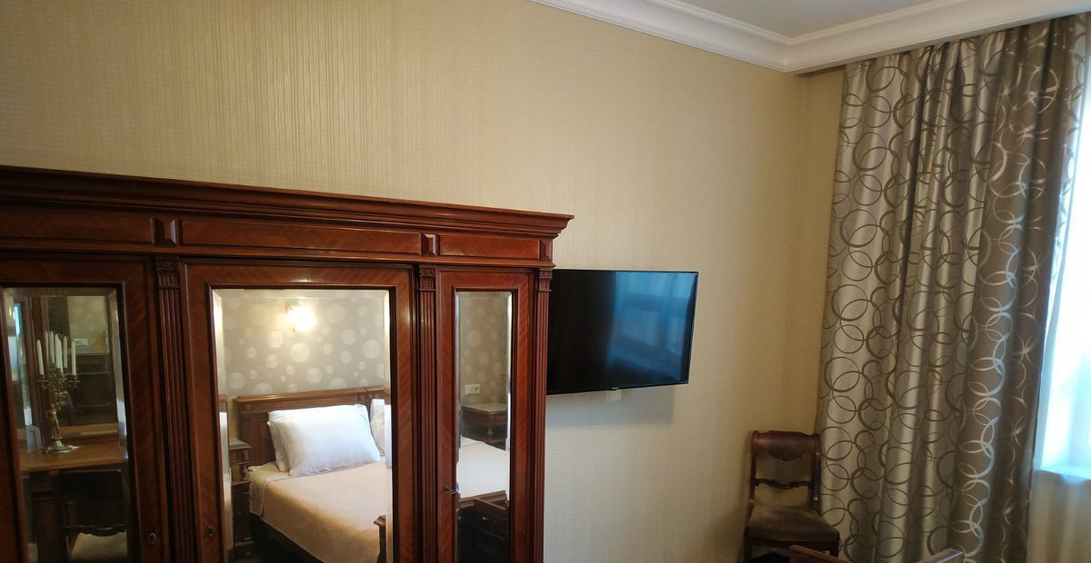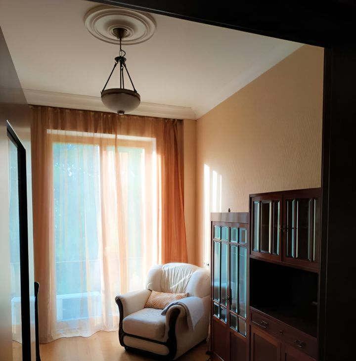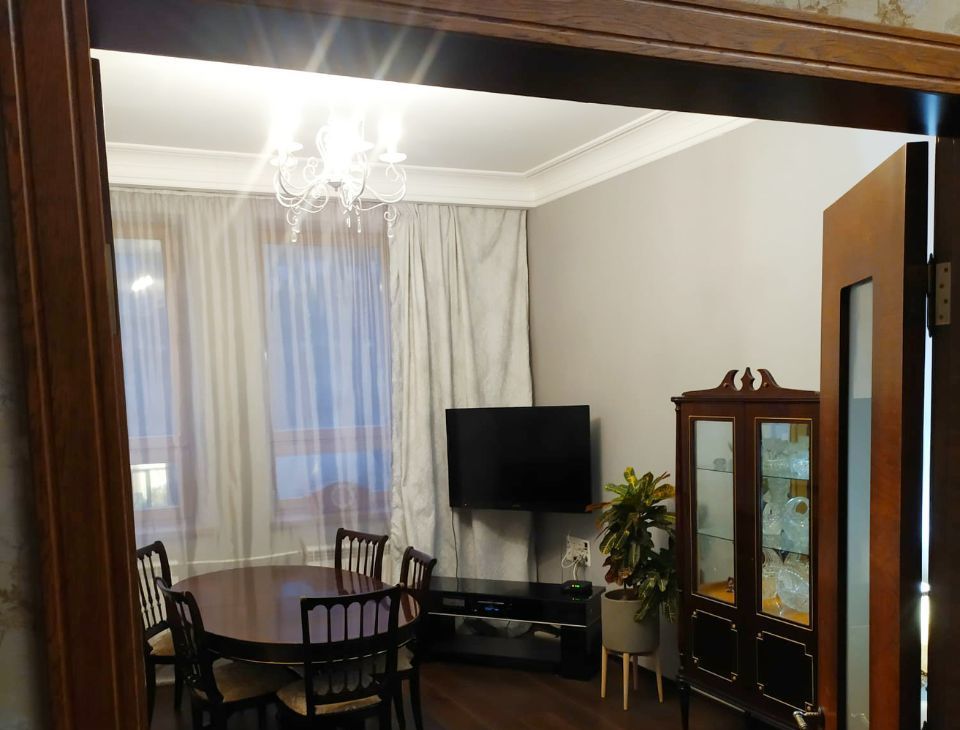 Сдается в аренду просторная трехкомнатная квартира в историческом доме 1939 года постройки. Общая площадь составляет 85 кв. м, расположена на 4 этаже 5-тиэтажного сталинского кирпичного дома, с пассажирским лифтом. Высокие потолки (3.6м), окна на две стороны, балкон. В квартире выполнена перепланировка и сделан дизайнерский ремонт с сохранением истории квартиры и мебели XVII-XIX вв из красного дерева.