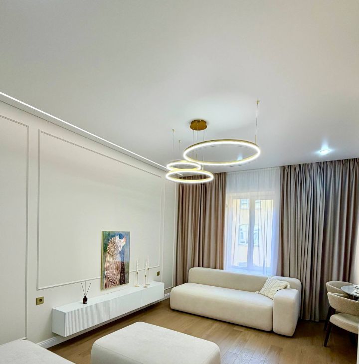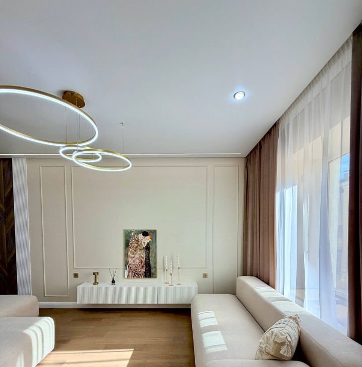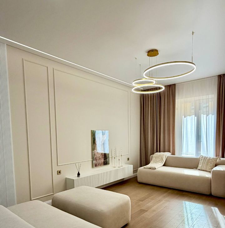 Квартира общей площадью 86 кв.м.имеет отличную планировку: Просторная кухня-гостиная площадью 24,1 кв.м. имеет два больших окна, что позволяет естественному свету проникать в комнату, делая ее светлой и очень уютной.