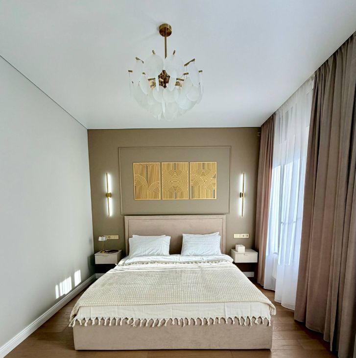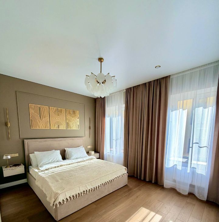 Большая спальня с двумя окнами создает приватное место для отдыха и сна, где можно расслабиться и восстановиться после напряженного дня. Изюминкой спальни является мебелированная гардеробная .