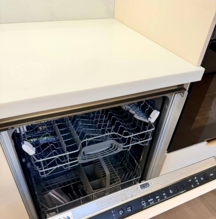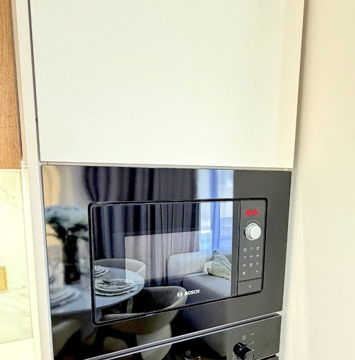 Установлена качественная встраиваемая техника: холодильник, посудомоечная машина, варочная поверхность, вытяжка, микроволновая печь, духовой шкаф.