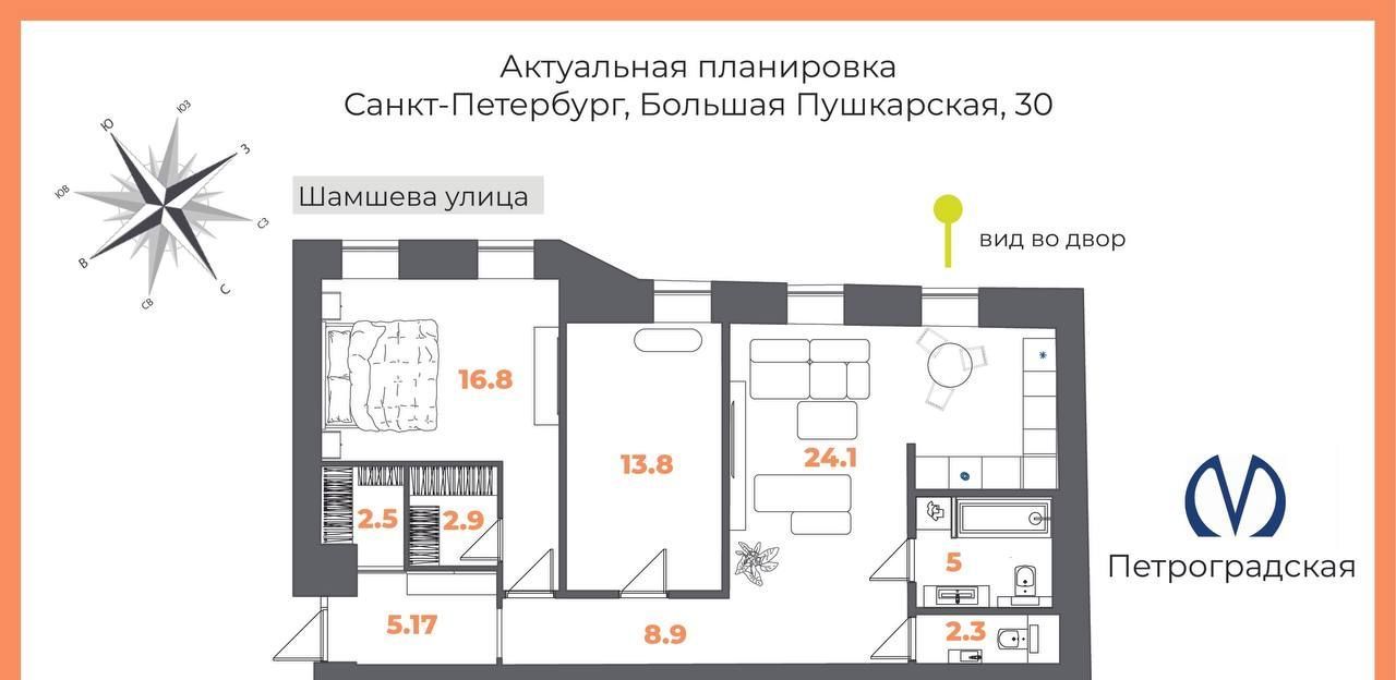 Вся мебель и техника входит в стоимость объекта, установлены подоконники из дуба, качественная входная дверь изумрудного цвета. Окна выходят в тихий, закрытый двор, городской шум не помешает вам наслаждаться уютными вечерами. 10 минут от метро Чкаловская спокойным шагом, станции Горьковская и Петроградская также в шаговой доступности.