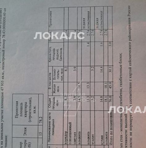 3-комнатная квартира: Санкт-Петербург, Железноводская улица, 32 (78 м²)