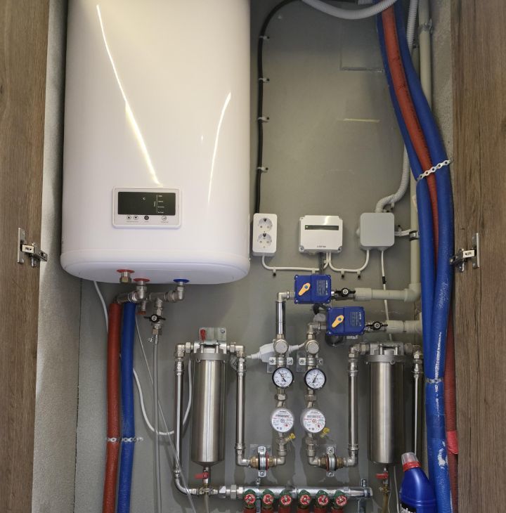 •Система фильтрации всей входящей воды, защита от протечек и прочее.