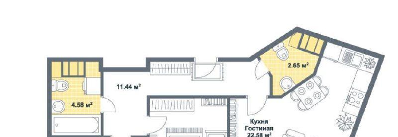 2-комнатная квартира: Санкт-Петербург, Социалистическая улица, 21 (55 м²)