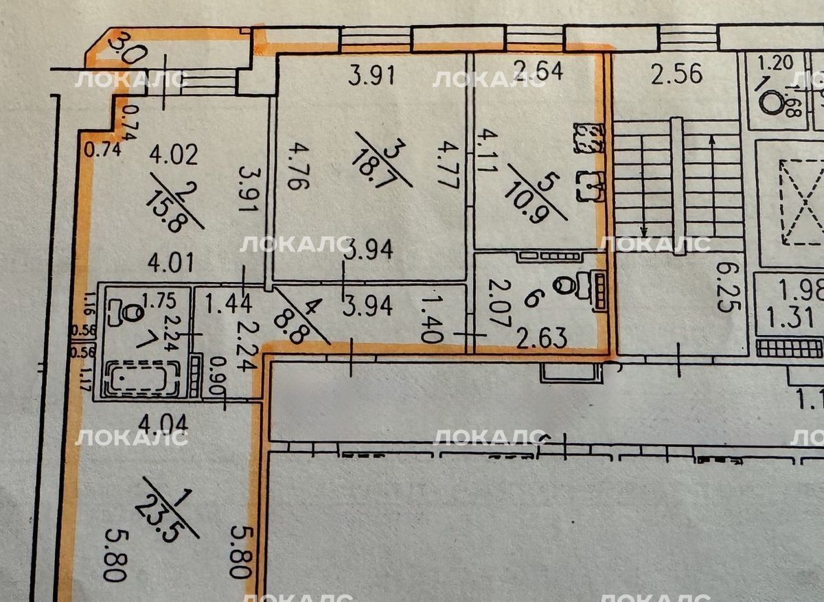 Общая площадь - 86,6 м2, плюс 3м2 остекленный балкон. В квартире три просторных комнаты правильной прямоугольной формы (15.8м2, 18.7м2 и 23.5м2), выходят на обе стороны дома. В прихожей установлен вместительный шкаф-купе до потолка с наполнением (остается новым хозяевам).