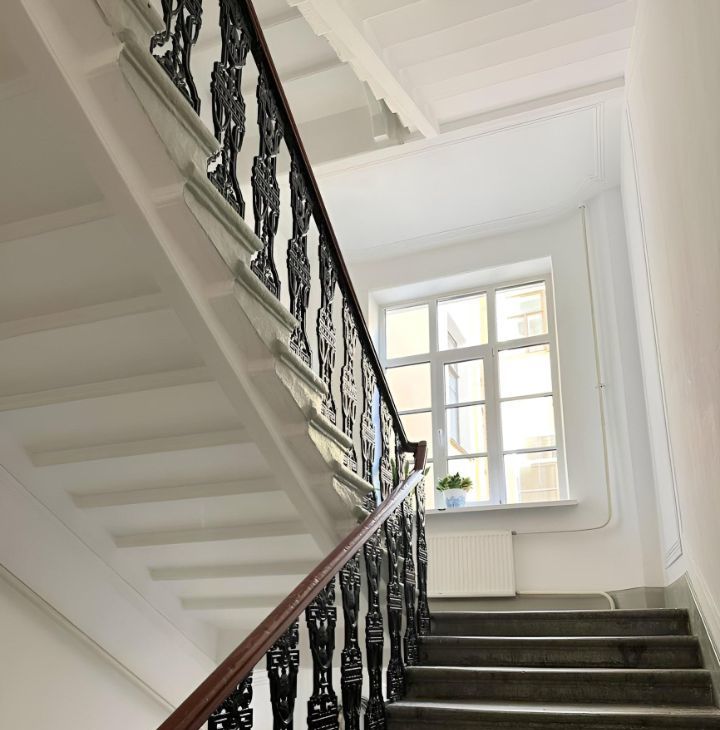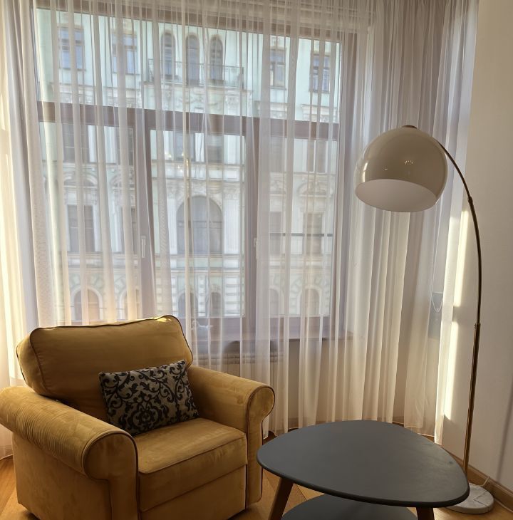Окна выходят на улицу с историческим видом и во двор.Надежность проживания обеспечивает новая дверь с кодовым замком, также рядом расположено отделение полиции.Прекрасная атмосфера дома, уютно и спокойно. Все чистоСуперкомфортная квартира для проживания в типовой локации