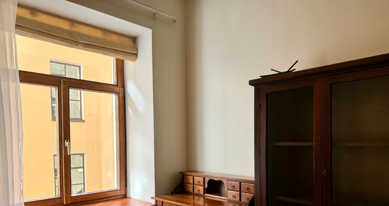 Комнаты изолированы. Гостиная с эркером 26 м, большая спальня 24м, кабинет 13 м, кухня-гостиная 16м, ванная комната 11м. Высота потолков 3,2 м, в квартире солнечно, просторно и уютно, тепло, летом не жарко. Светло.