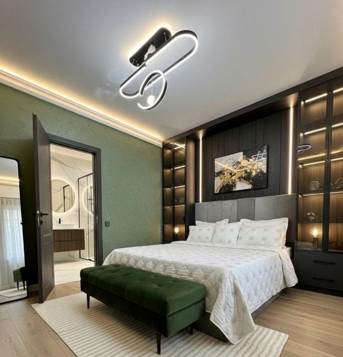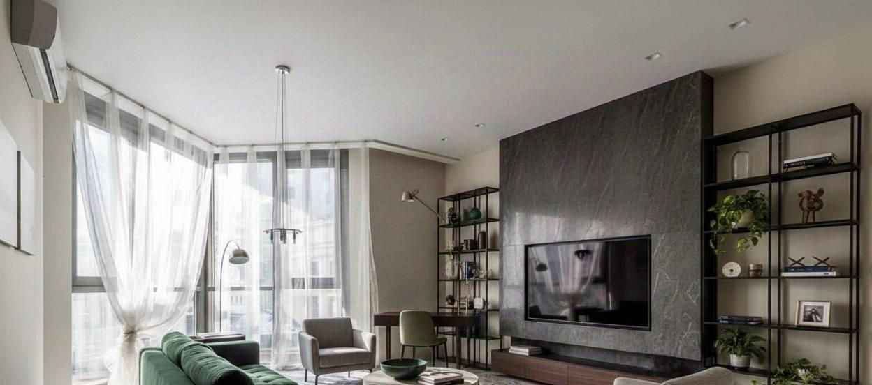 Интерьер квартиры выполнен в стиле дизайнерского ремонта. Комнаты полностью меблированы, а кухня оснащена всей необходимой техникой: кондиционер, холодильник, посудомоечная машина, телевизор и стиральная машина. Планировка удобная и продуманная, что делает это пространство идеальным для комфортной жизни.