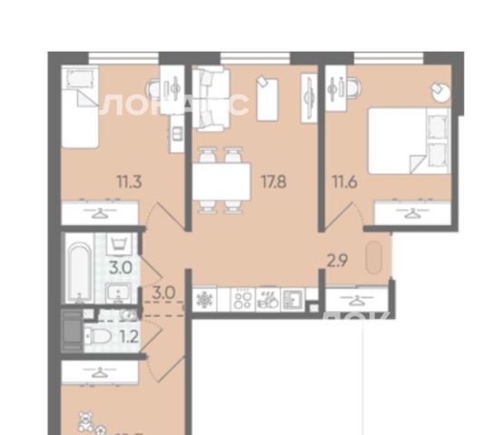 3-к кв. Санкт-Петербург дор. Муринская, 31к2 (63.6 м²)