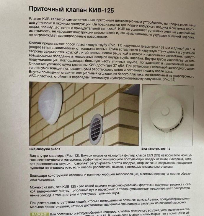 - приточные клапаны КИВ-125 — чистый воздух без сквозняков, фильтрация