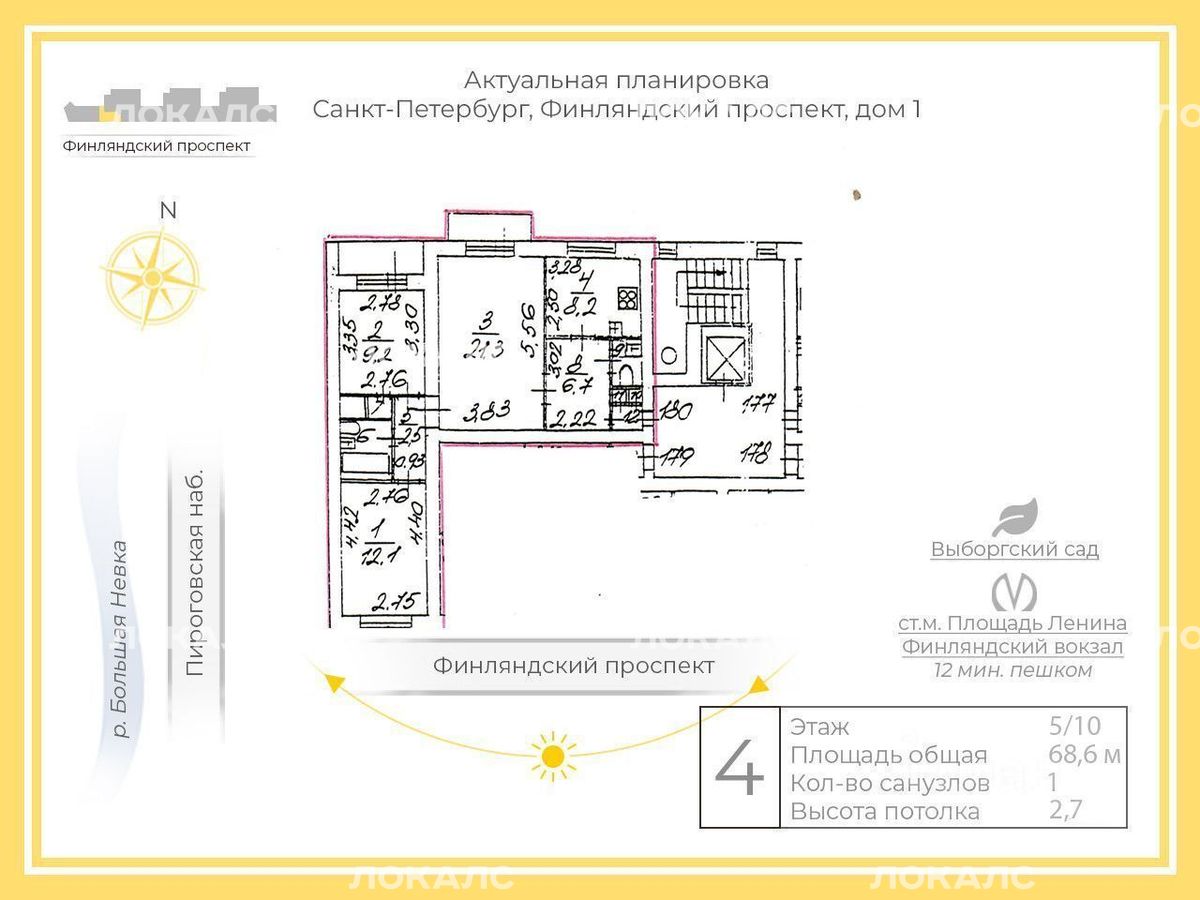 3-к кв. Санкт-Петербург Финляндский просп., 1 (68.6 м²)