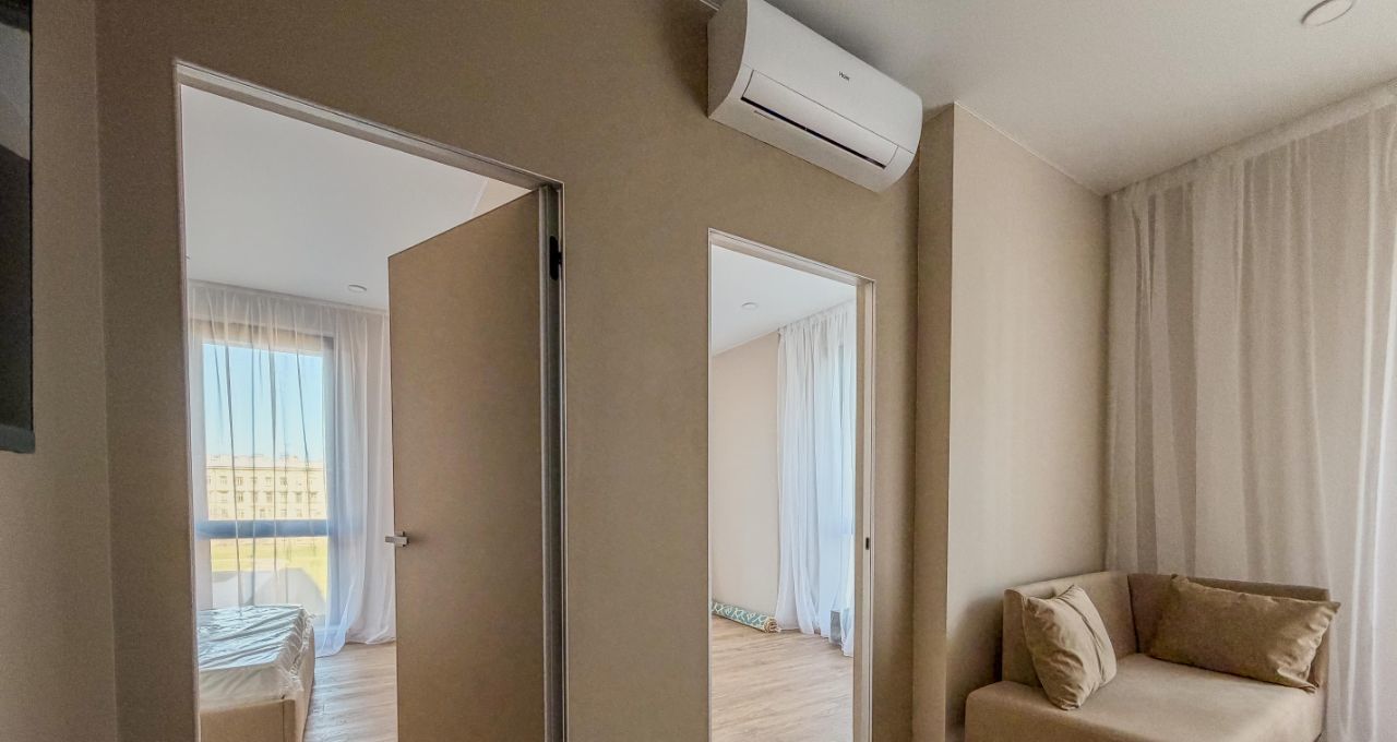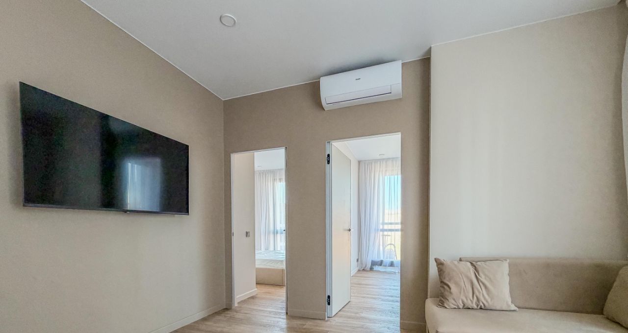 Квартира выполнена в дизайнерском стиле, поэтому вы сможете насладиться уютной и современной обстановкой. В наличии вся необходимая техника: кондиционер, холодильник, посудомоечная машина, телевизор и стиральная машина. Мебель имеется как в комнате, так и на кухне. В совмещенном санузле установлена душевая кабина, что делает пребывание более комфортным.