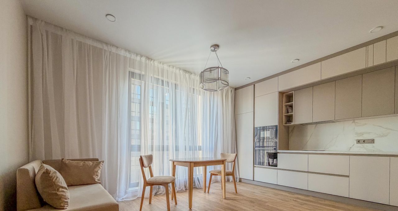 Предлагаем в аренду стильную трехкомнатную квартиру в современном доме 2025 года постройки. Общая площадь квартиры составляет 53.8 кв. м, из которых 21.7 кв. м жилая площадь и 19.7 кв. м кухня. Квартира расположена на 3 этаже 14-этажного дома, а потолки высотой 2.8 метра создают ощущение пространства. Окна выходят во двор, что обеспечивает тишину и уединение.