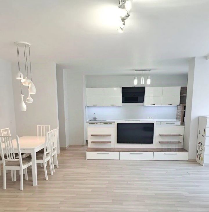 С просторной кухней - гостиной, с двумя спальными, двухсторонняя.
