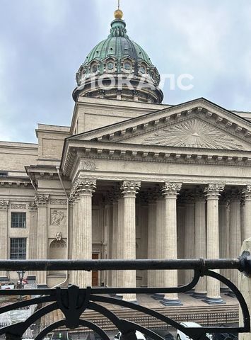 Квартира располагает светлой гостиной, балкон и окна которой выходят на Казанский собор, большой спальней, уютным кабинетом, который может быть также оборудован в дополнительную спальню.