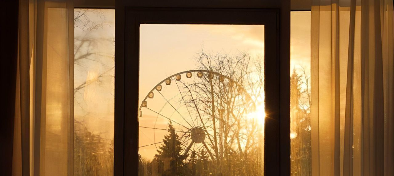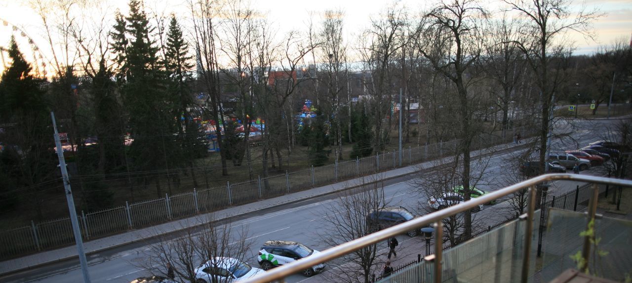 * прямой вид на парк из всех трёх окон
