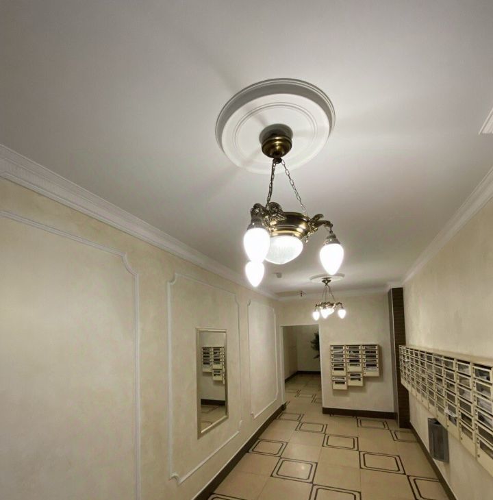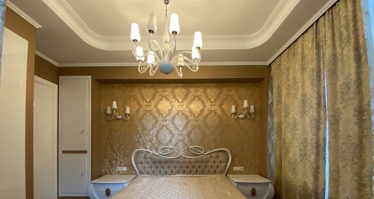 Элегантная квартира с дизайнерским ремонтом и потолками 3,20 м. Из спальни открывается прямой вид на купол Исаакиевского собора.