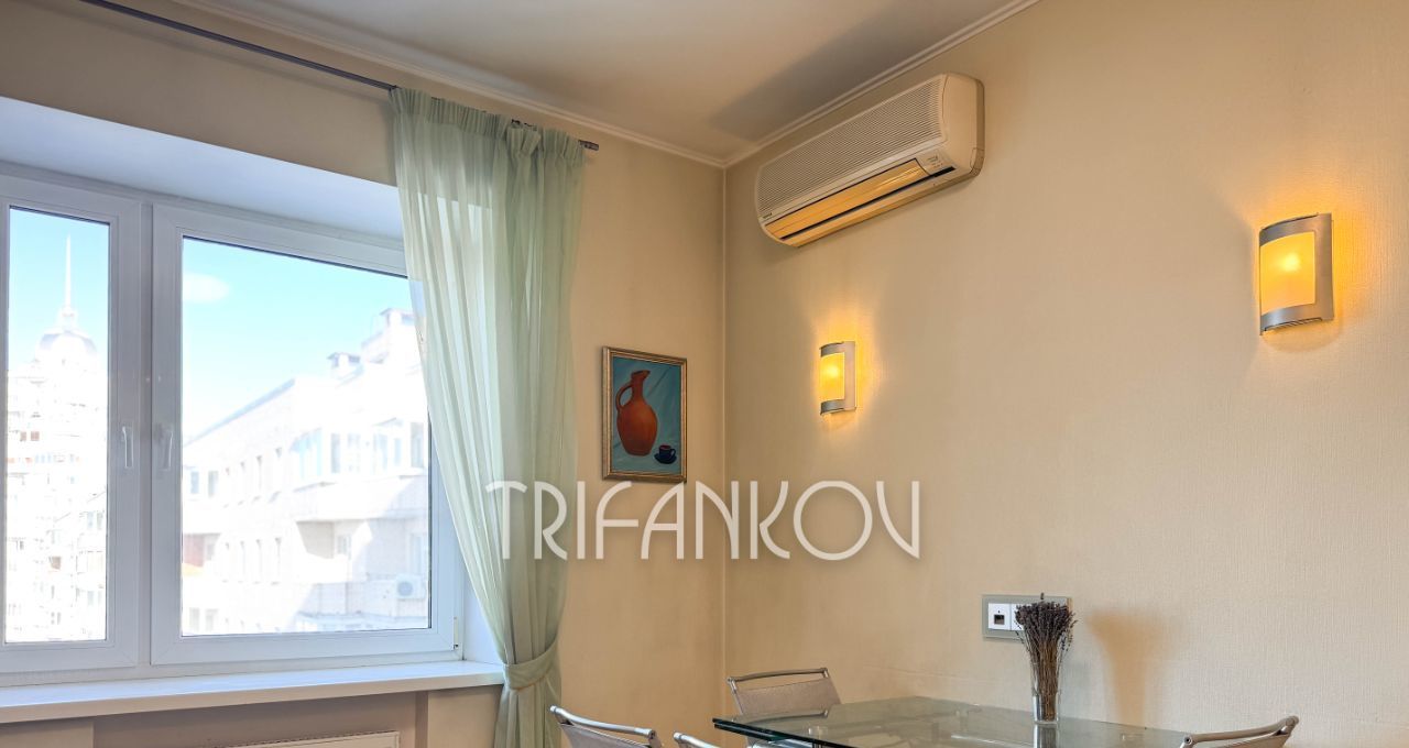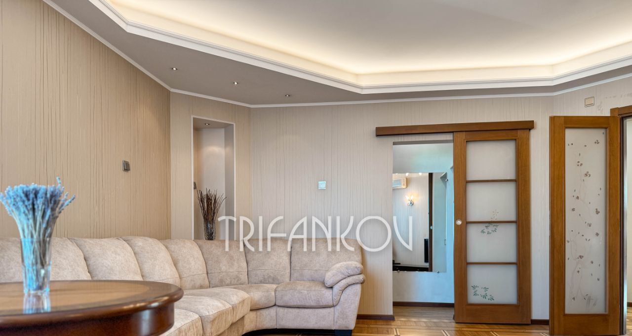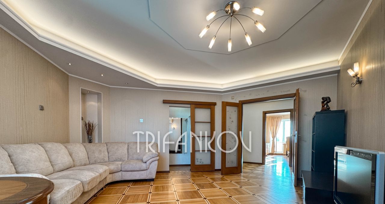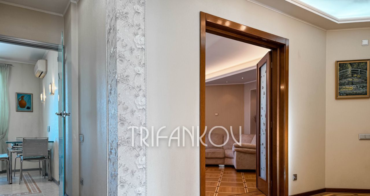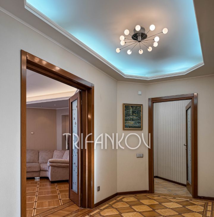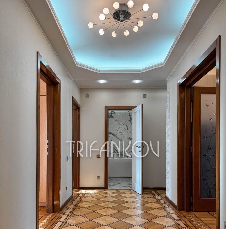 О КВАРТИРЕ: Общая площадь — 85.1 м². Выполнен качественный дизайнерский ремонт. На полу в жилых зонах — великолепный наборный паркет из натурального дерева.