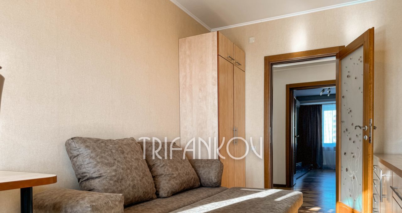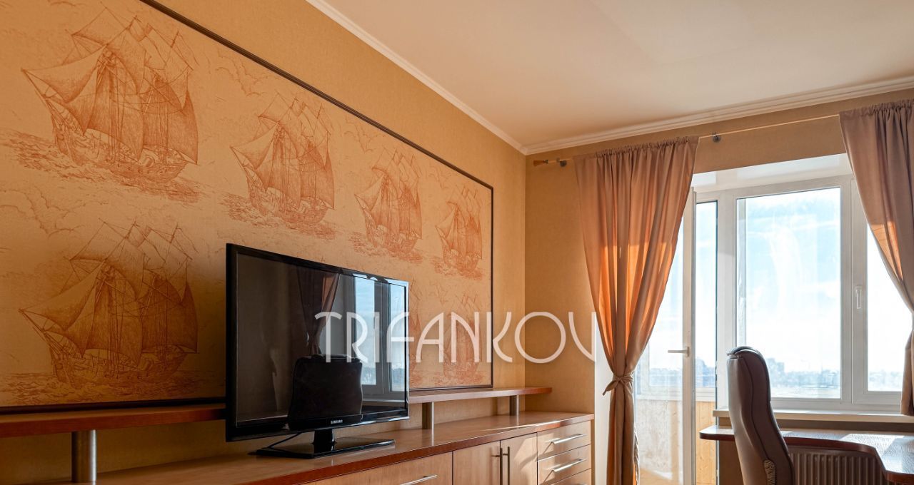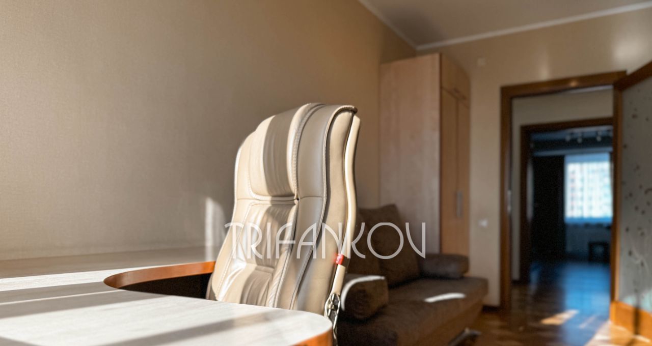 • Кабинет / Вторая спальня: Универсальная комната с выходом на лоджию. Оборудована раскладным диваном, большим рабочим столом с креслом, вместительным шкафом и телевизором. Отлично подойдет для удаленной работы или как детская.