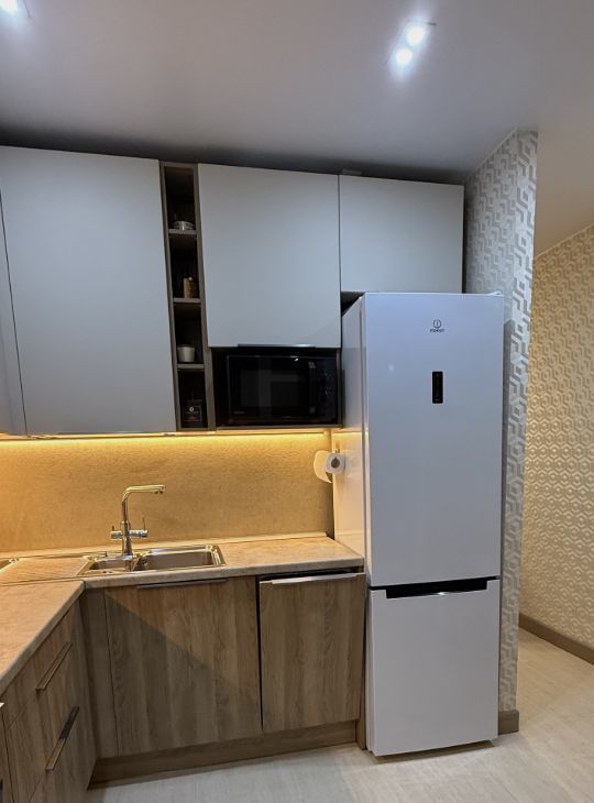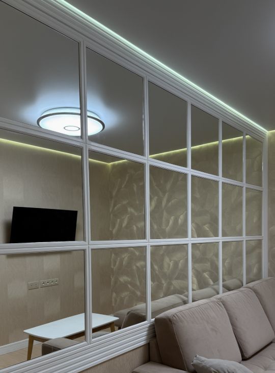 В интерьере использовано современное дизайнерское решение: особое внимание уделено деталям, эргономичным системам хранения и сценариям освещения.