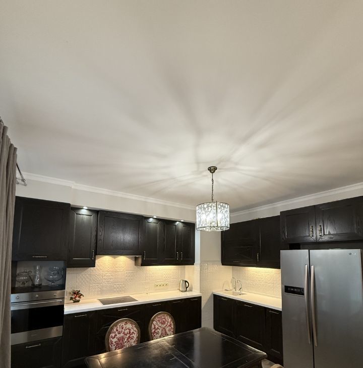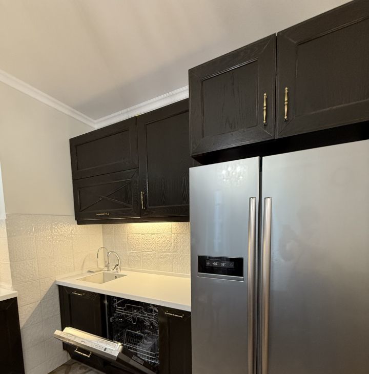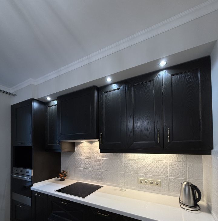Встроенная техника: духовой шкаф, микроволновка, варочная панель, посудомоечная машина.