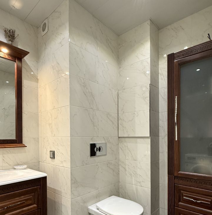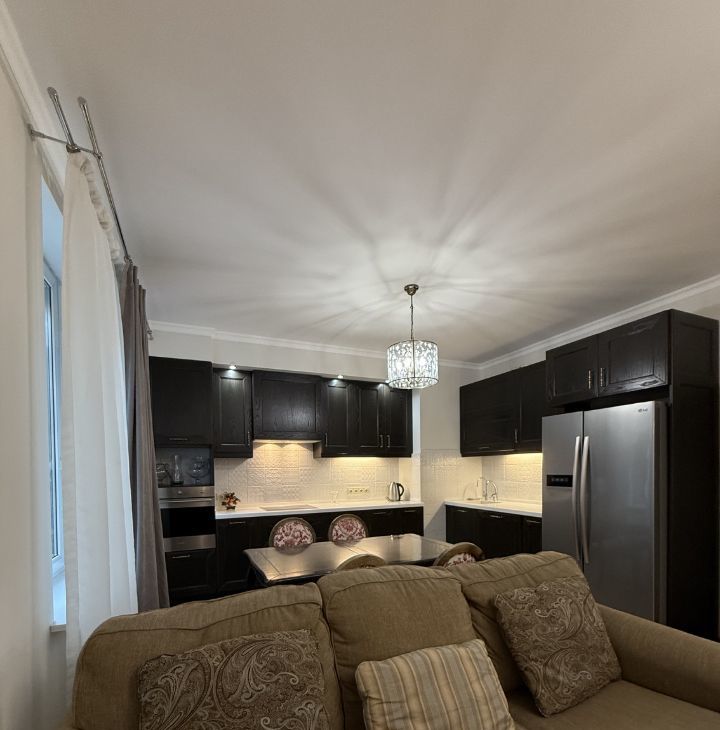 Выполнен отличный дизайнерский ремонт из экологически чистых материалов.