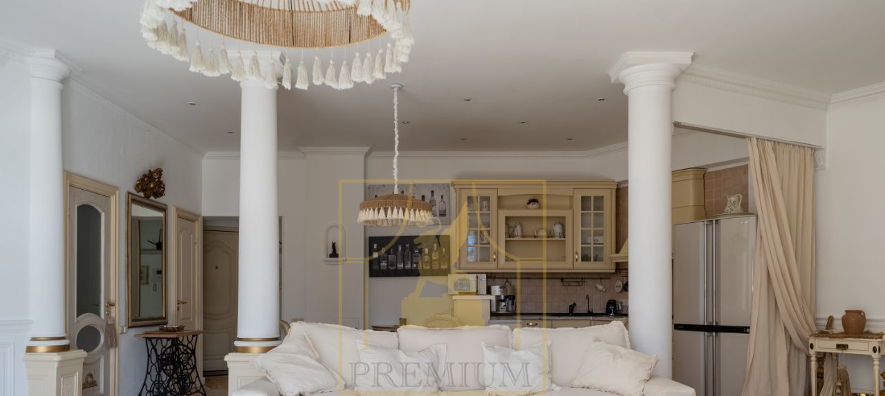 Светлая, стильная, большая, в лучах солнечного света квартира в самом центре Крестовского Острова, на Крестовском проспекте.