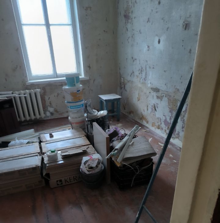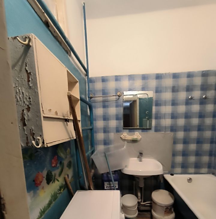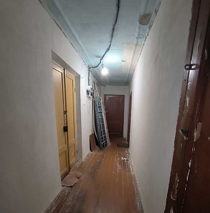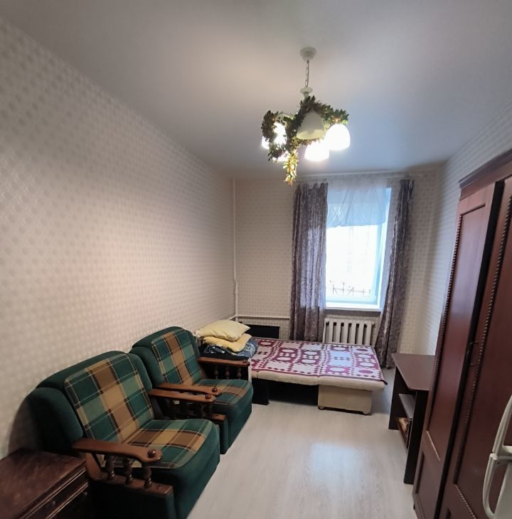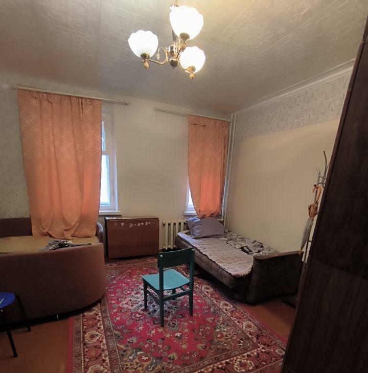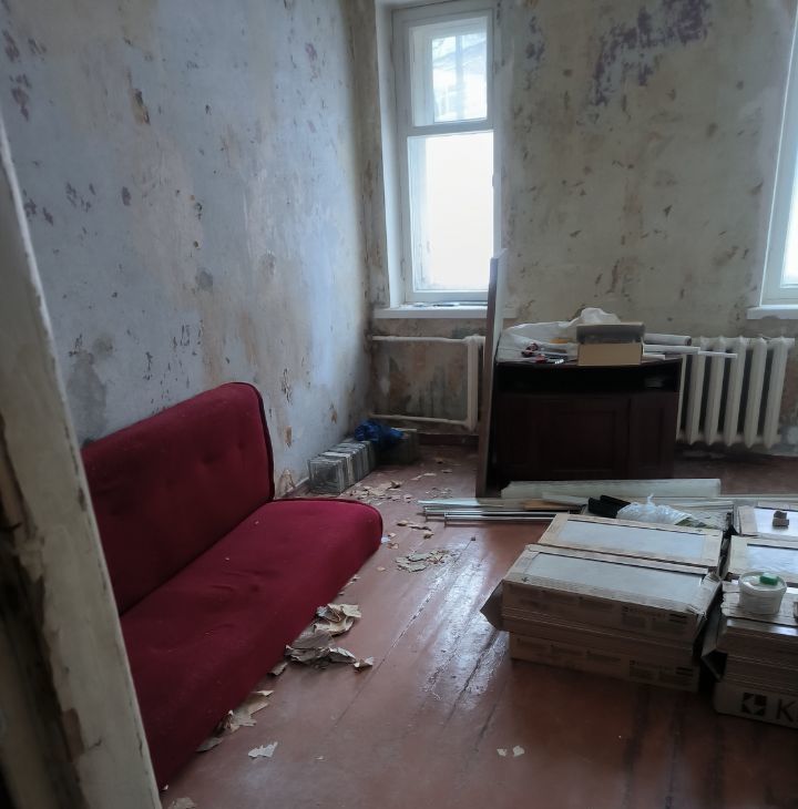 -Мебель из комнат почти вся вывезена(кухня останется), обои сняты, освобождено место для творчества. Можно сделать отличную семейную квартиру, если немного вложиться!