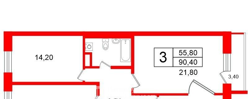 3-к кв. Санкт-Петербург Ланское ш., 14к1 (90.4 м²)