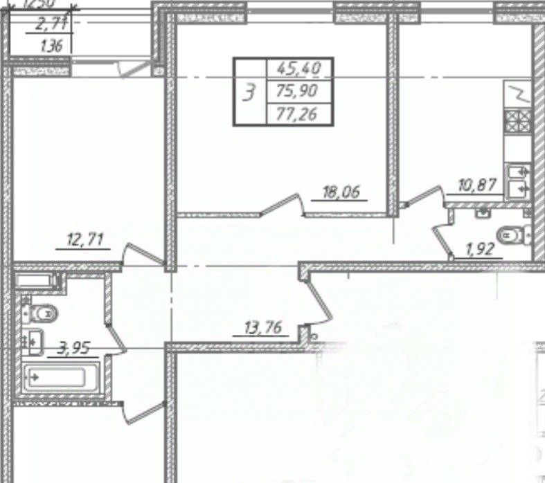 3-к кв. Санкт-Петербург Ленинский просп., 68 (75.9 м²)