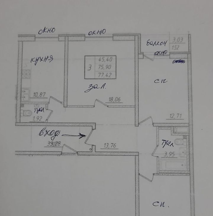 3-к кв. Санкт-Петербург Ленинский просп., 68 (76.0 м²)