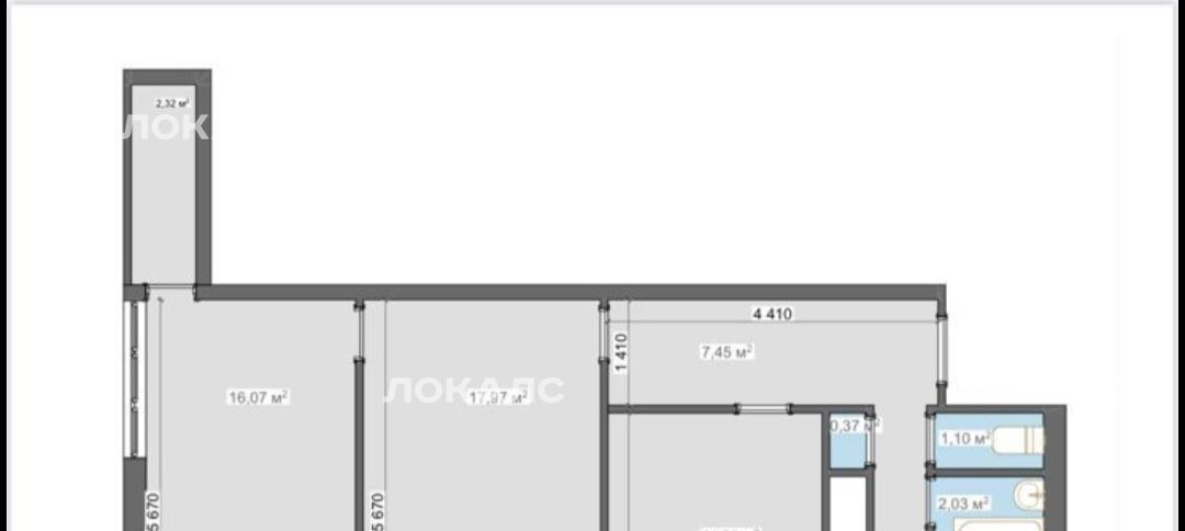 3-к кв. Санкт-Петербург Лужская ул., 4К1 (63.1 м²)