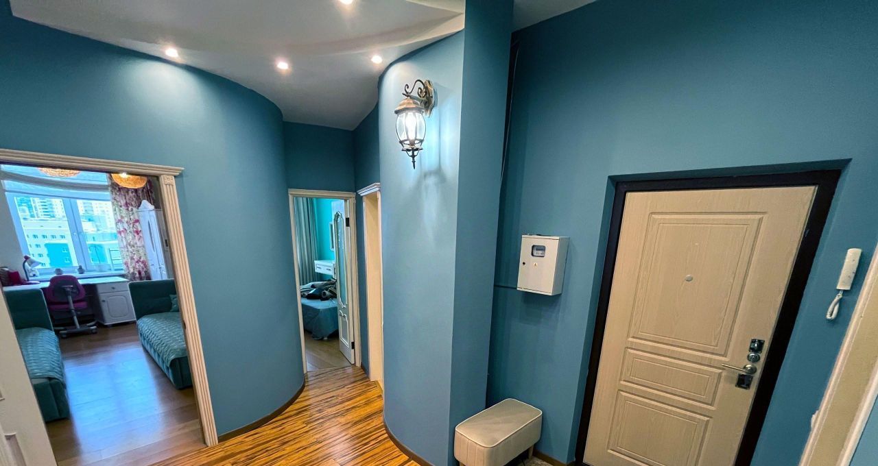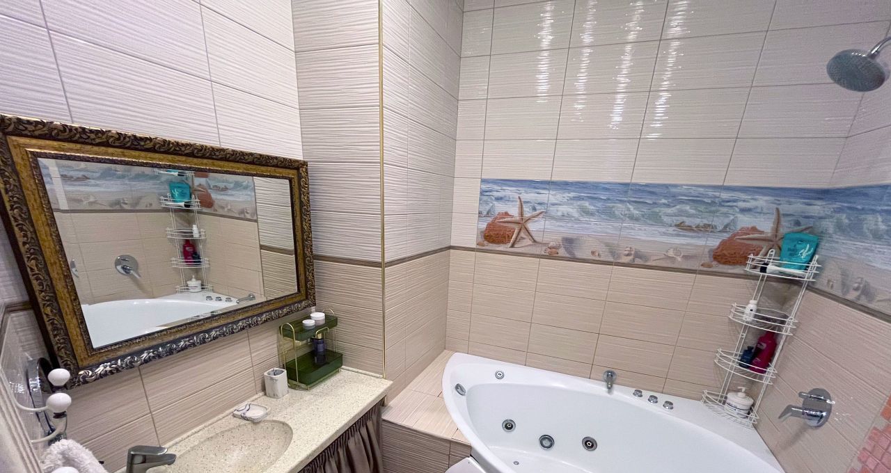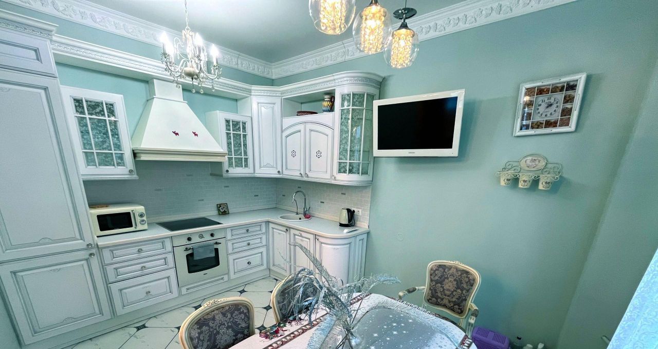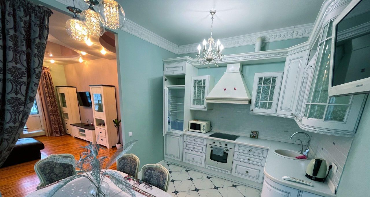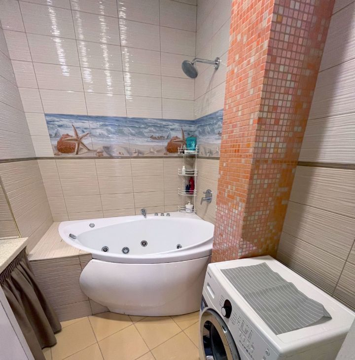 Квартира оснащена всем необходимым для комфортного проживания: гардеробная 2,5 м², балкон, посудомоечная и стиральная машины, встроенный холодильник, индукционная варочная панель, духовой шкаф, микроволновая печь, 2 телевизора, интернет, WI-FI, мультиварка, электрический чайник, кондиционер, утюг, фен.