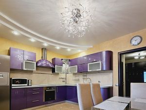 В квартире выполнен евроремонт. Большая кухня площадью 20 кв. м оборудована всей необходимой мебелью и техникой. В комнатах также есть мебель, поэтому вам не придется беспокоиться о дополнительных покупках. Для вашего удобства в квартире установлены кондиционер, холодильник, телевизор и стиральная машина. Два совмещенных санузла оснащены ванной и душевой кабиной, что подойдет для большой семьи или нескольких жильцов.