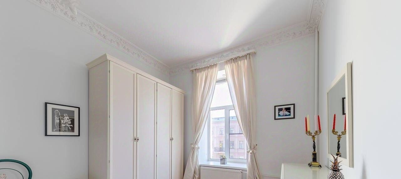 Три комнаты с историческими окнами, выходящими в сердце города. Высокие потолки и стены, помнящие смену эпох. Пространство, которое становится не просто жильём, а частью вашего личного петербургского мифа.