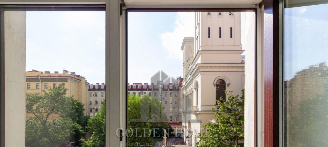 Окна квартиры выходят на пешеходную улицу и на изумительный вид храма Петра и Павла.