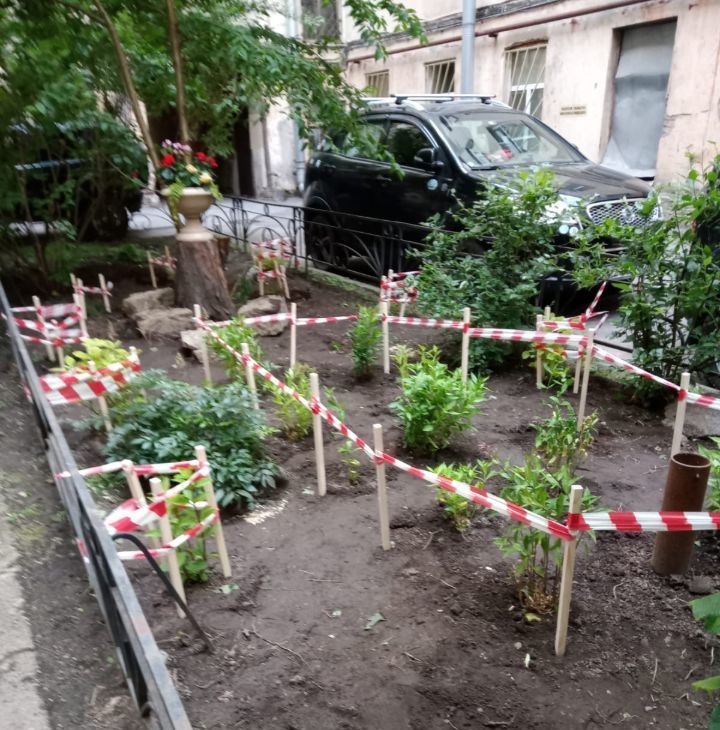 -- Настоящий питерский дворик: с черемухой, жасмином, сиренью, с ухоженным цветником в палисаднике.