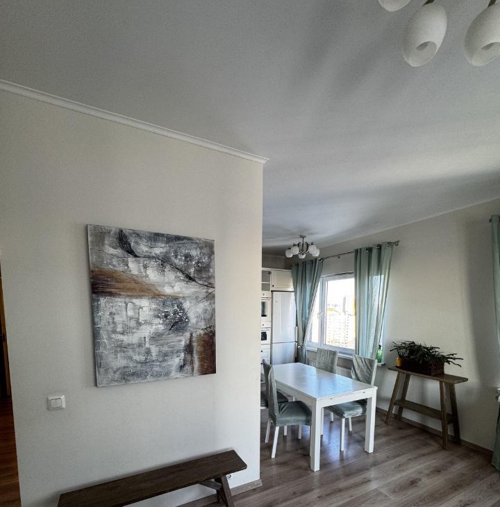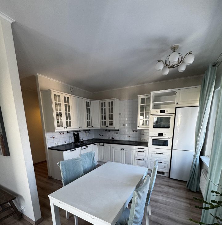 Светлая, стильная и тёплая квартира полностью укомплектована всей необходимой бытовой техникой: стиральная машина, варочная поверхность , духовой шкаф, микроволновая печь, холодильник, посудомоечная машина. Просторная кухнягостиная (30 м кв) с обеденной зоной и мягким пуфами станет центром семейных вечеров.