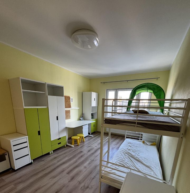 Детская комната для двоих детей с отдельными рабочими местами и кроватями, а так же большой гардеробной .