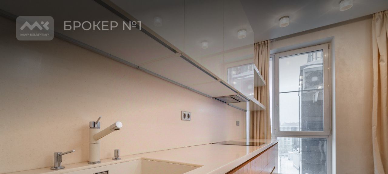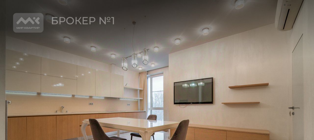 Квартира расположилось на 5-м этаже, общей площадью 135 м2, две просторные комнаты, большая гостиная с панорамным остеклением, наполненная светом кухня оборудованная, всей необходимой бытовой техникой.