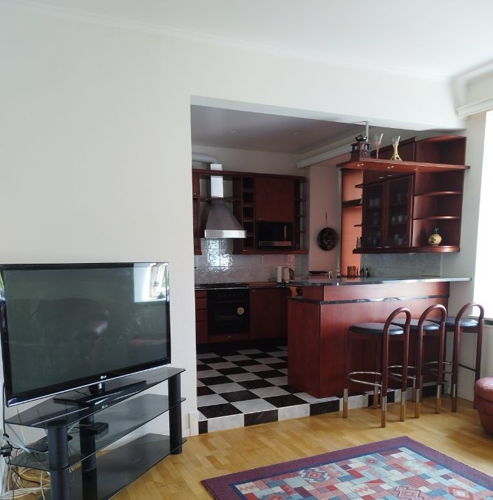 Площадь всей квартиры 112 метров.Большая комфортная кухня-гостиная 48 метров.кв.,оборудованная кондиционером,с кожаной мебелью. Высокие потолки 3.15 м. Есть вся необходимая бытовая техника,включая посудомоечную машину.Комнаты тоже достаточно просторные. Спальная комната 20 метров с выходом на балкон и видом на парк. Проходная комната -гостиная 20 метров с дизайнерской люстрой ручной работы и комфортной мебелью для отдыха и дружеских посиделок. Детская комната 17 метров.Квартира двухсторонняя,солнечная,тёплая. Хорошая звукоизоляция . В парадной установлено круглосуточное видеонаблюдение .Закрытый охраняемый двор со своим парковочным местом и современной детской площадкой .Территория благоустоенная,много зелени, очень чисто.В доме есть лифт.Хорошие спокойные соседи.Стоимость аренды 95000 + КУ по квитанции. Комиссия 50%.