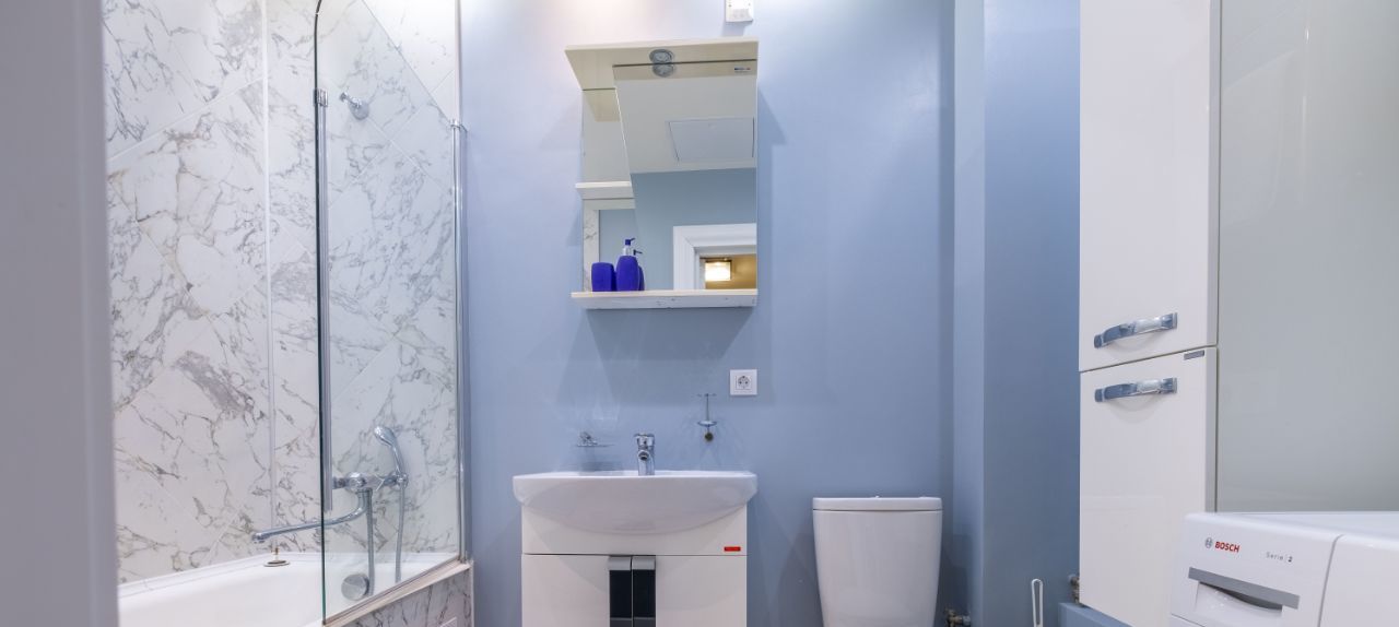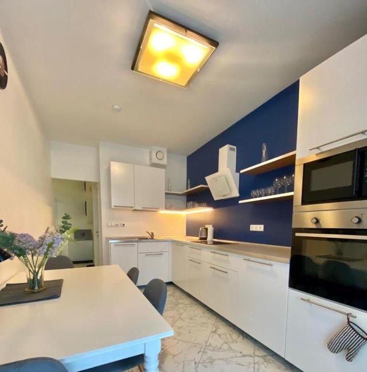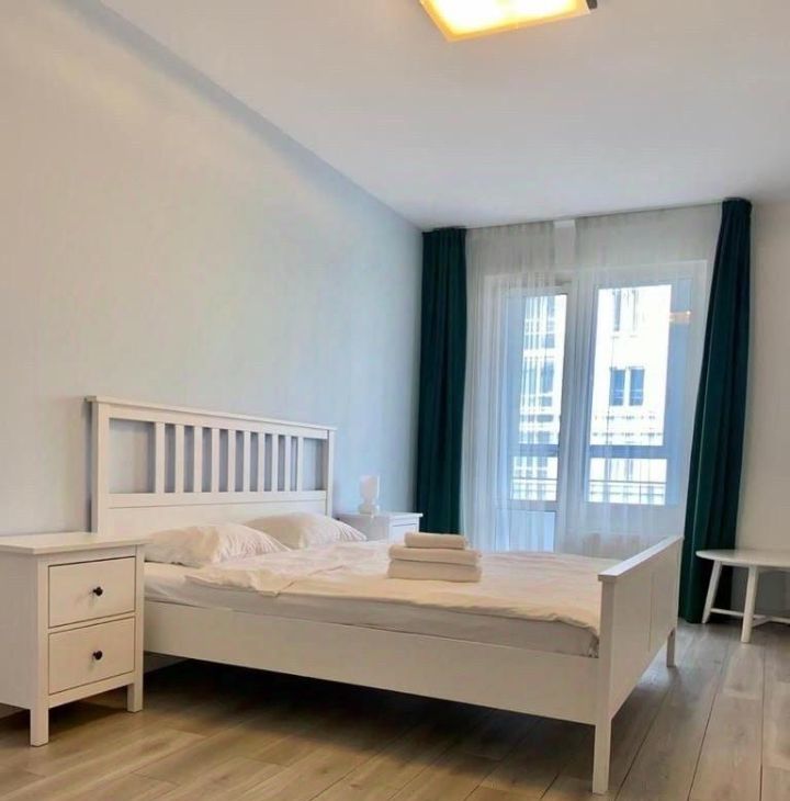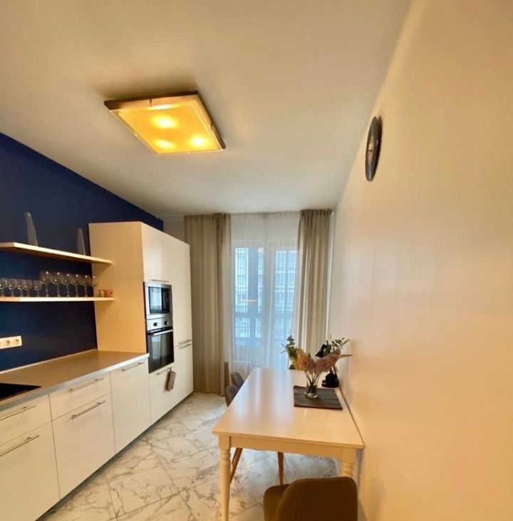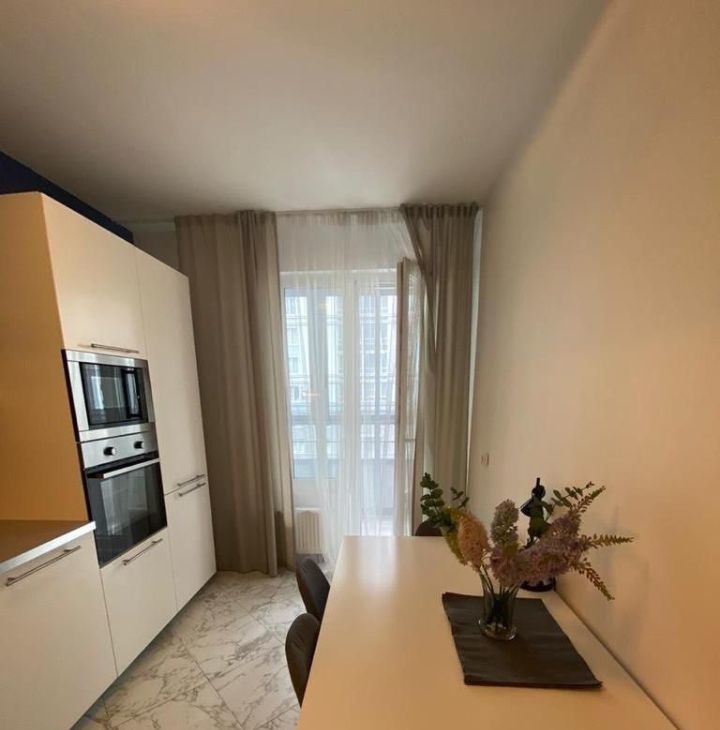 Квартира с качественным современным ремонтом. В комнатах и на кухне есть вся необходимая мебель. Из техники — холодильник, посудомоечная машина, телевизор, стиральная машина, электрическая плита и духовой шкаф. Окна выходят как на улицу, так и во двор, поэтому в квартире всегда светло и уютно.