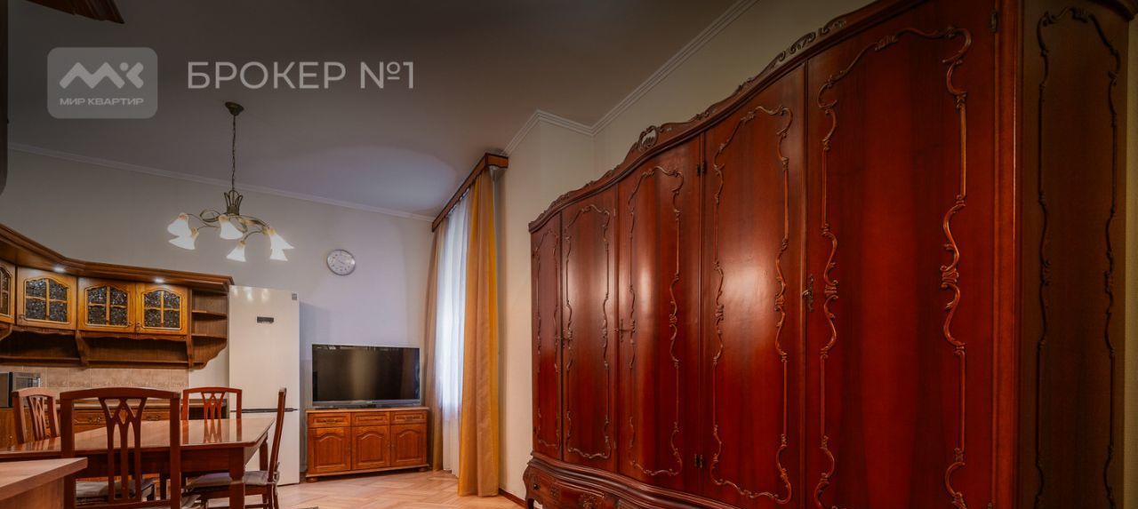 Ремонт выполнен в классическом стиле , куплена дорогостоящая итальянская и испанская мебель из дорогих пород дерева, качественная техника Bosh, на полу роскошный паркет. Высота потолков достигает 3.5.м.