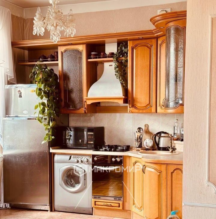 Из техники: холодильник, телевизор, стиральная машина, варочная газовая плита, духовой шкаф, элекрочайник, микроволновая печь.