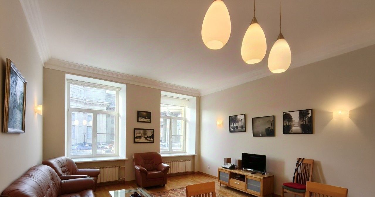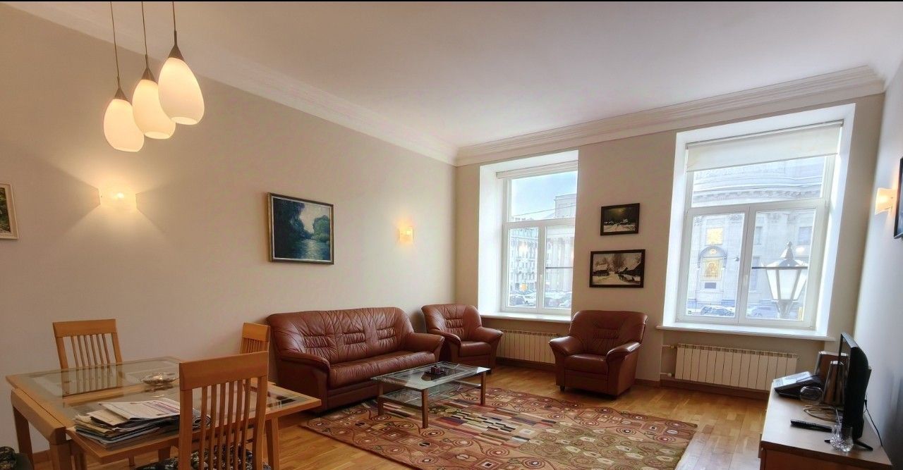 Арт. 130051093 Сдается на длительный срок квартира с видом на Казанский собор и канал Грибоедова. Две спальни выходят в тихий закрытый двор, где есть парковка для жильцов, а гостиная на канал Грибоедова.