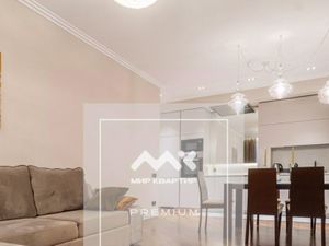 Планировка квартиры продумана до мелочей и включает в себя просторную кухню-гостиную, идеально подходящую для семейных вечеров и приема гостей, а также две уютные спальни, обеспечивающие комфортный отдых. Квартира оборудована современной бытовой техникой, в том числе стиральной и посудомоечной машинами, духовым шкафом, варочной панелью, холодильником и телевизором, что делает проживание максимально удобным и беззаботным.